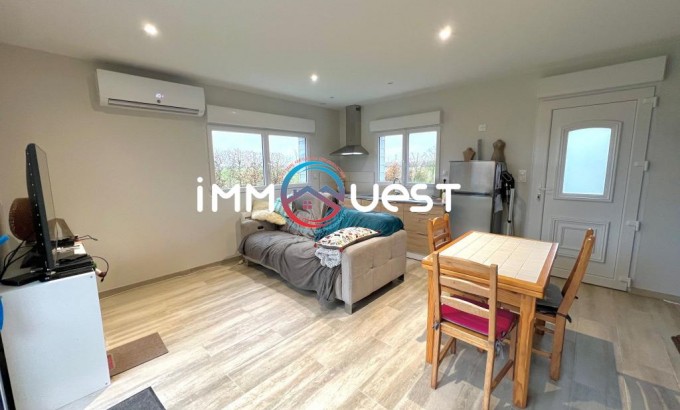 Communicante avec l’habitation principale, cette extension récente constitue un véritable appartement autonome, idéal pour recevoir un proche, générer un revenu locatif ou aménager un espace professionnel. Elle comprend :