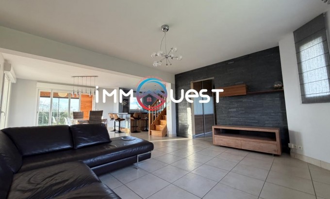 Au rez-de-chaussée, la maison se compose d’un hall d’entrée avec placards, d’un bureau, d’un salon-séjour lumineux ouvert sur une cuisine aménagée et équipée, d’un cellier, d’une grande véranda , d’un WC indépendant ainsi que d’une salle de bains comprenant une douche et une baignoire.
