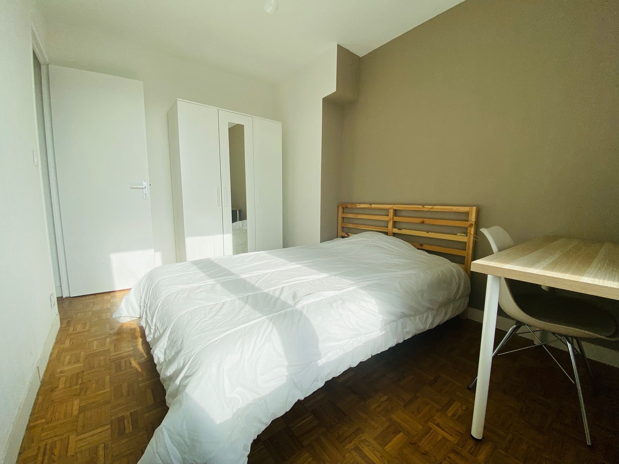 L'appartement dispose de trois chambres, dont deux avec dressing et lit double. L'une des chambres bénéficie d'un balcon privatif. La salle de bains est équipée d'une douche à l'italienne, d'un meuble vasque et d'un lave-linge. Les toilettes sont séparées.