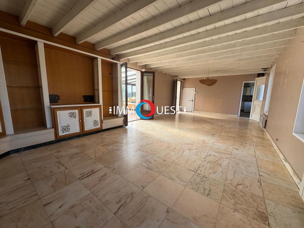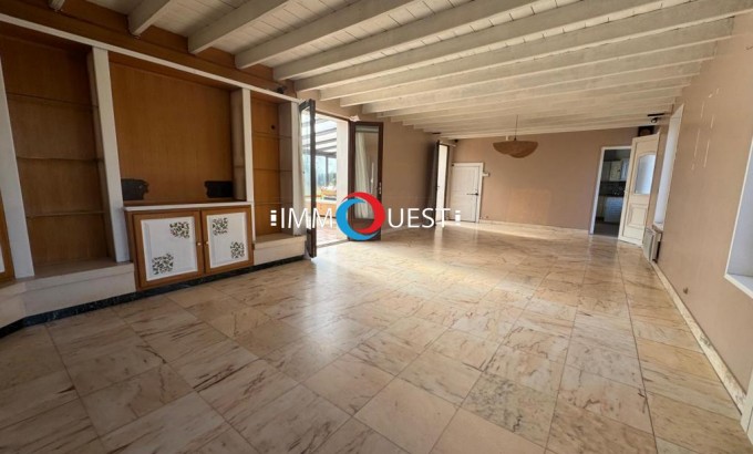 Le rez-de-Chaussée est composé d'un salon séjour (44 m²), une cuisine aménagée séparée, une arrière cuisine, deux chambres dont une suite parentale, une salle de bains (baignoire balnéo-douche), une laverie, 2 WC et une belle véranda (86m²).