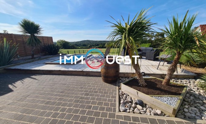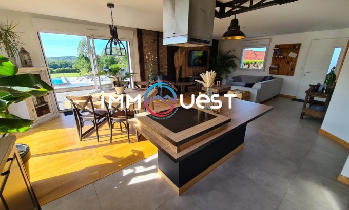 Coup de coeur assuré pour ce plain pied avec grande terrasse et jardin arboré orienté sud/ouest avec vue dégagée sur la campagne vous offrant ainsi de magnifiques couchers de soleil.