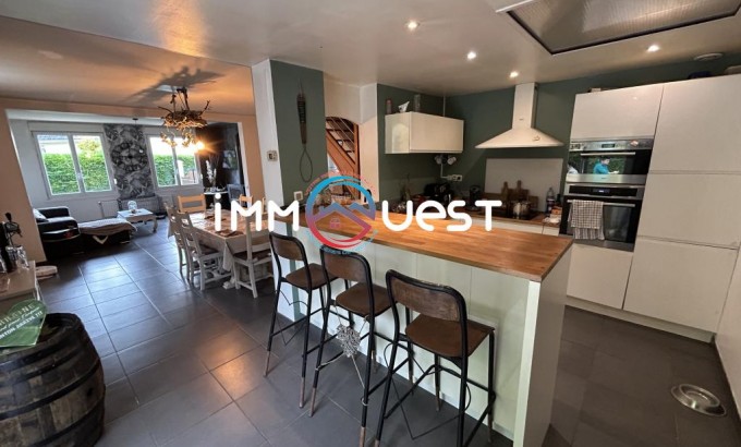 Au rdc vous trouverez: une entrée sur grand salon-séjour avec cuisine ouverte aménagée et équipée, une salle d'eau, une chambre, laverie/cellier, un wc. A l'étage: palier, 2 grandes chambres.