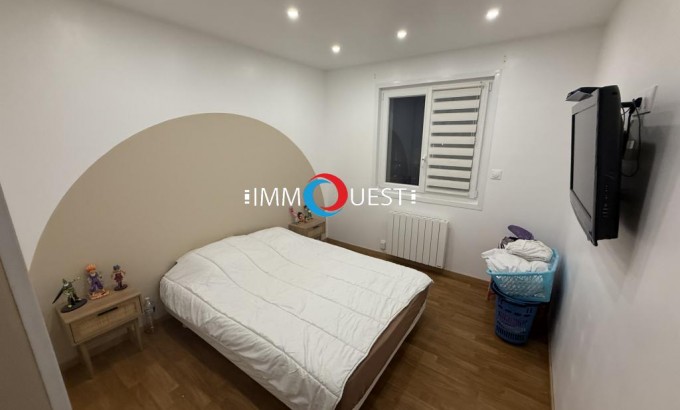 Celui ci est composé au rez de chaussée, d'une entrée sur salon séjour avec insert bois, d'une cuisine aménagée et équipée, de deux chambres avec dressing, une salle de bain, un rangement, un coin bureau et un wc séparé.