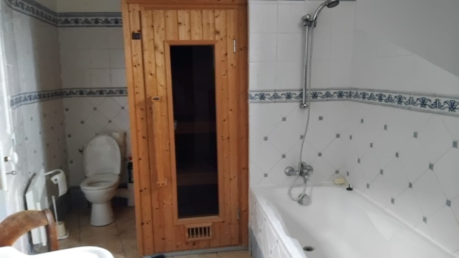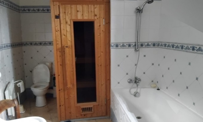 Pour la détente : salle de bains avec baignoire et sauna, salle d'eau supplémentaire et WC indépendants.