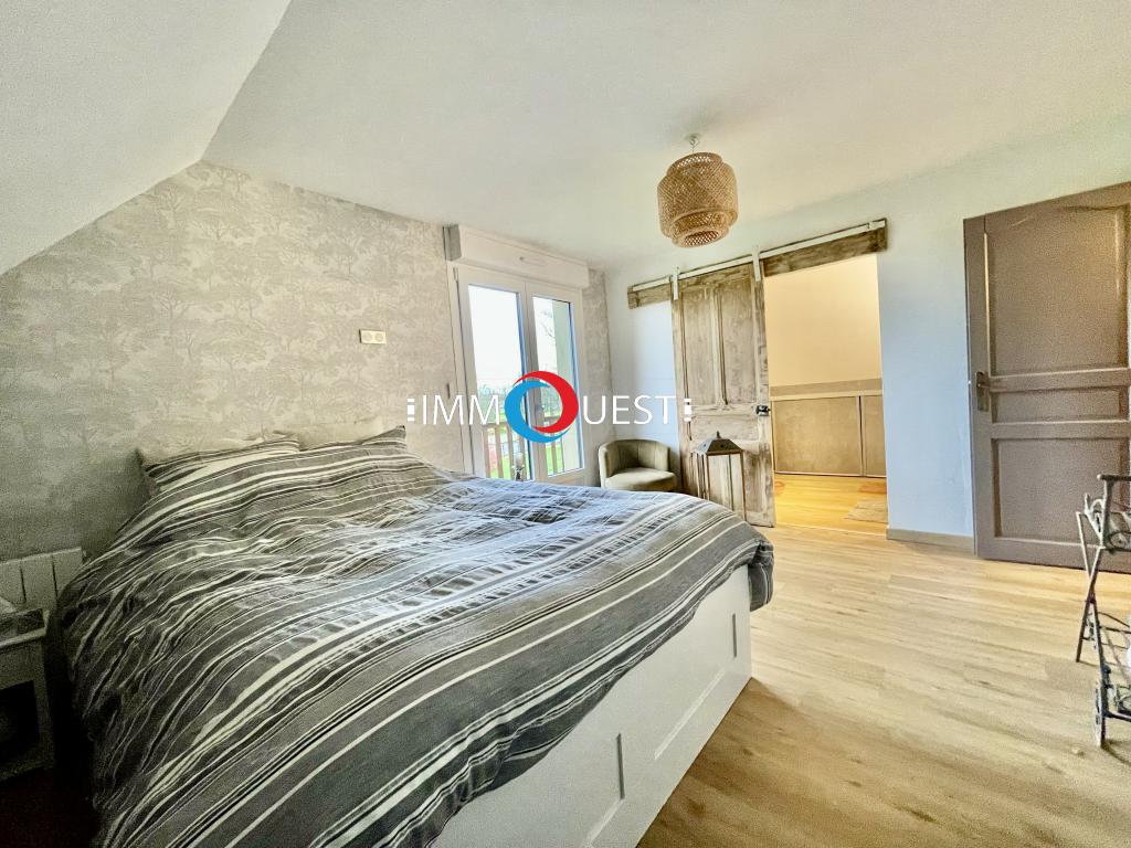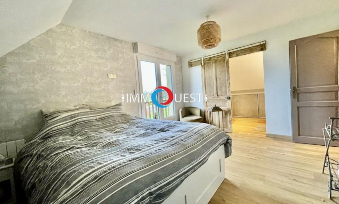 À l’étage, la maison dispose de quatre grandes chambres, dont une suite parentale avec salle de bains privative. Un coin bureau est aménagé sur le palier.