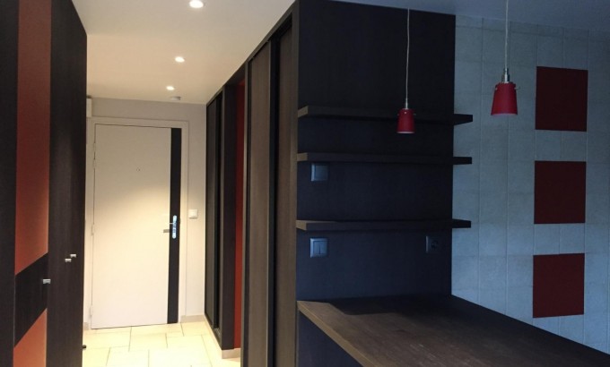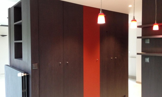 Une grande entrée avec deux grands placards aménagés