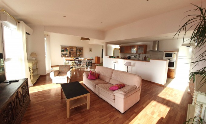 L'appartement se compose d'un grand séjour avec salle à manger, exposé plein sud, garantissant une belle luminosité tout au long de la journée. Il dispose de deux chambres, d'un agencement fonctionnel et d'équipements adaptés à une occupation immédiate.