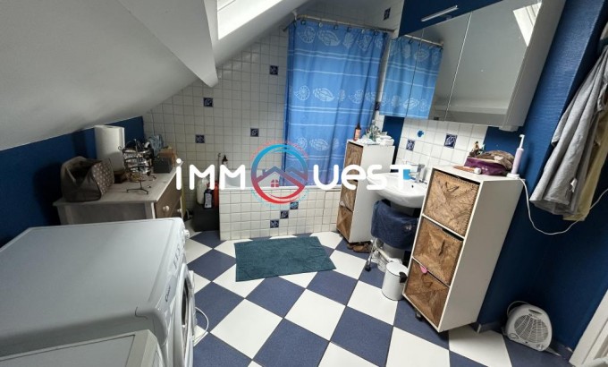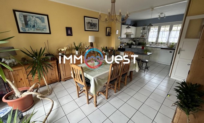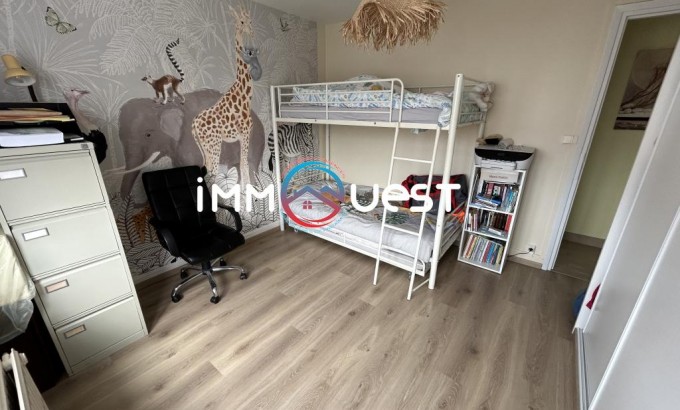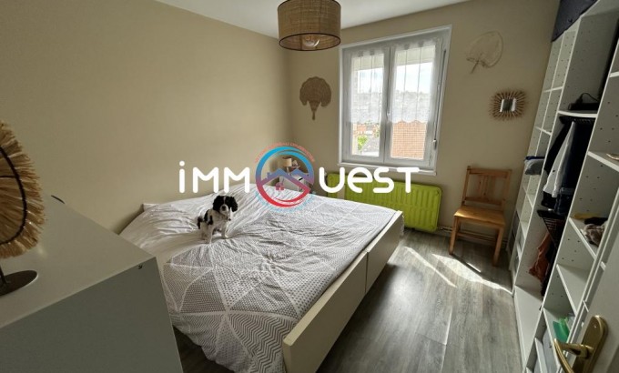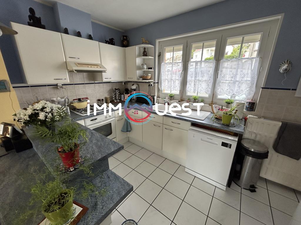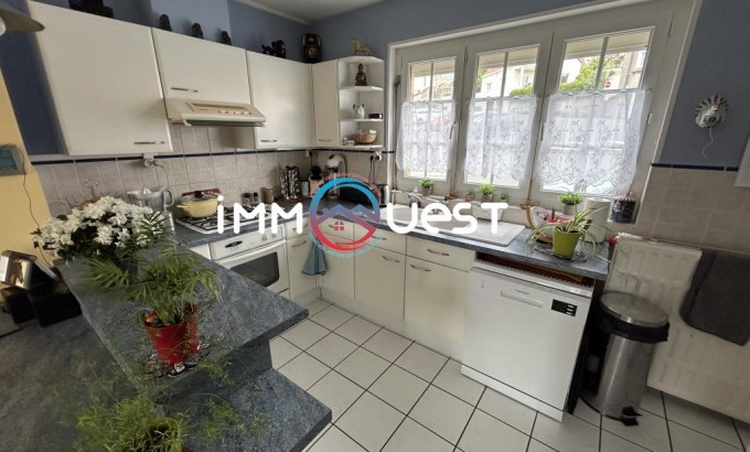 Exclusivité Immouest: Située à moins de 5 min des écoles, lycées et de l'Hôpital, Maison mitoyenne de 93m² avec terrasse et cour extérieure exposé plein sud offrant au RDC: une entrée, une cuisine aménagée et équipée, une salle à manger, un salon avec CFBois, un wc, terrasse suspendue plein sud. A l'étage: couloir, 3 chambres, une salle de bain. Rez-de-jardin: sous-sol complet donnant sur cour.