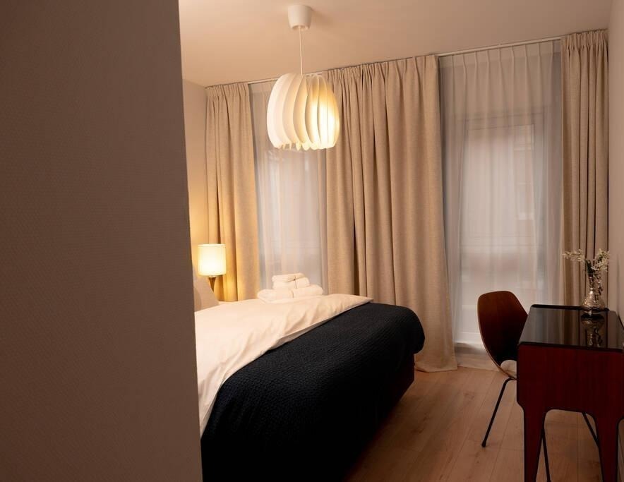 L'espace nuit comprend une chambre avec lit double et une salle de bains. Les WC sont indépendants. Le logement est entièrement meublé avec du mobilier de qualité, prêt à vivre.