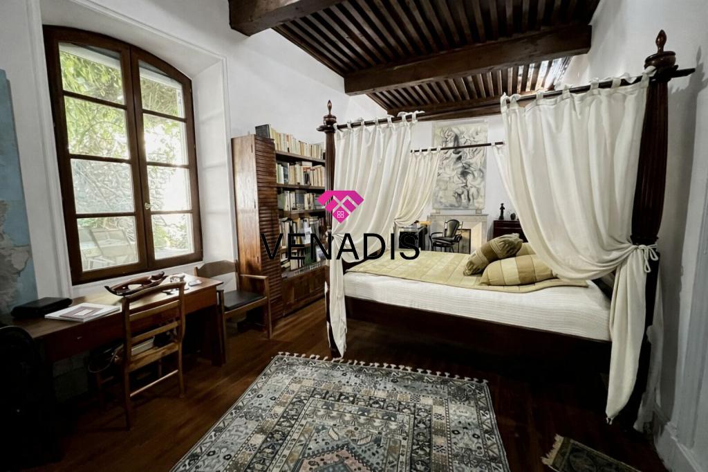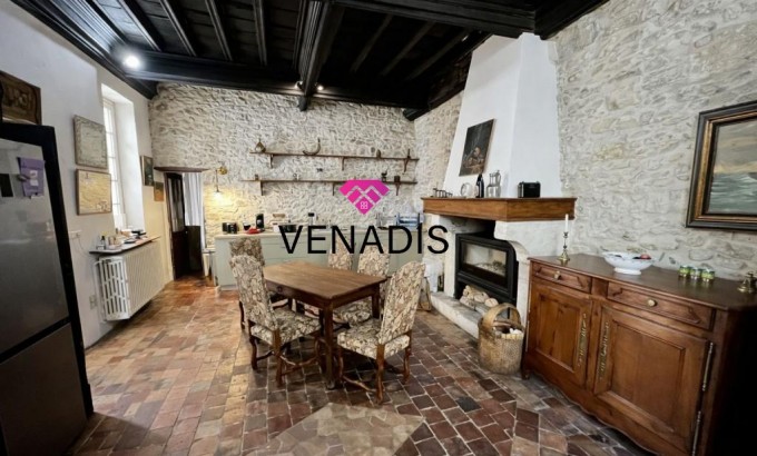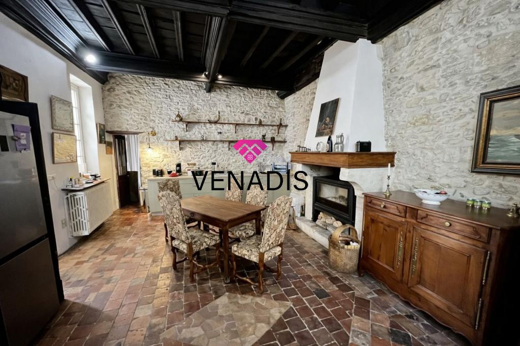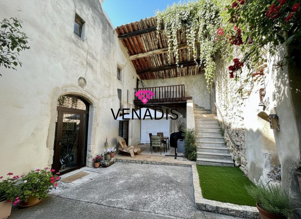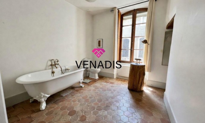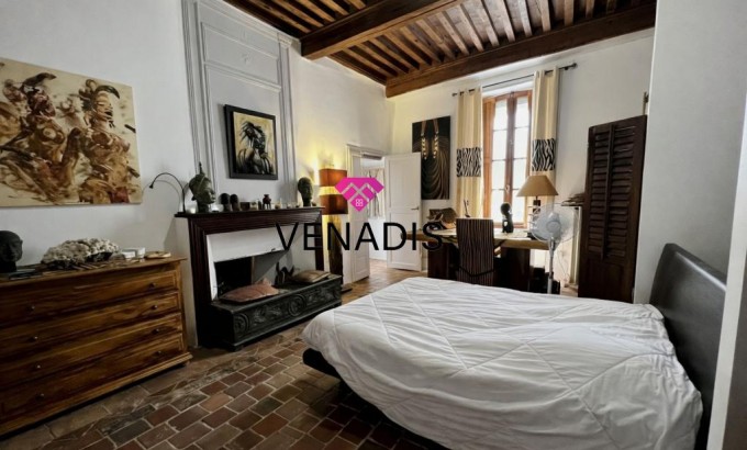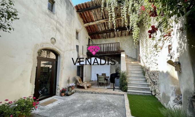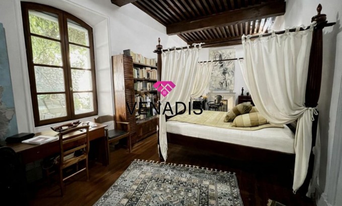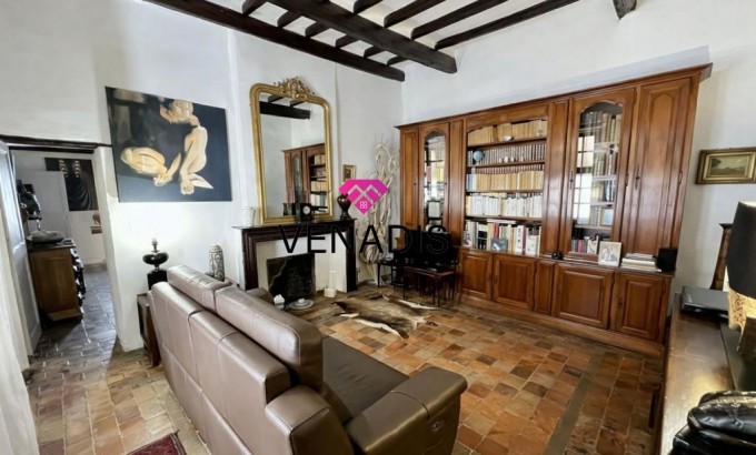 Demeure de caractère du XVe siècle entièrement remise au goût du jour, implantée au cœur du village avec jardin et piscine. Le bien développe environ 195 m² de surface habitable, articulés autour d'une cour intérieure de 110 m² agrémentée de végétation. La distribution intérieure comprend un hall d'entrée, une cuisine ouverte sur la salle à manger, un salon, quatre chambres, une salle de bains, deux salles d'eau et des toilettes. Complètent l'ensemble un grenier de 120 m², des caves voûtées et une cave à vin dédiée.