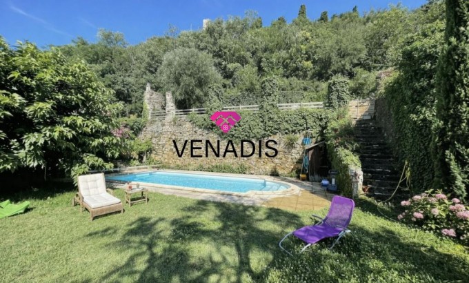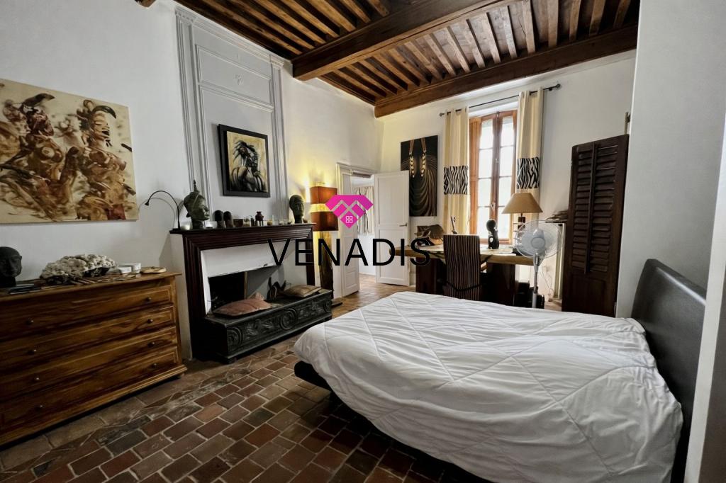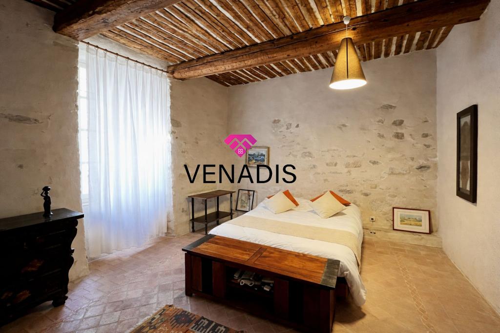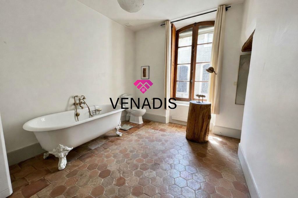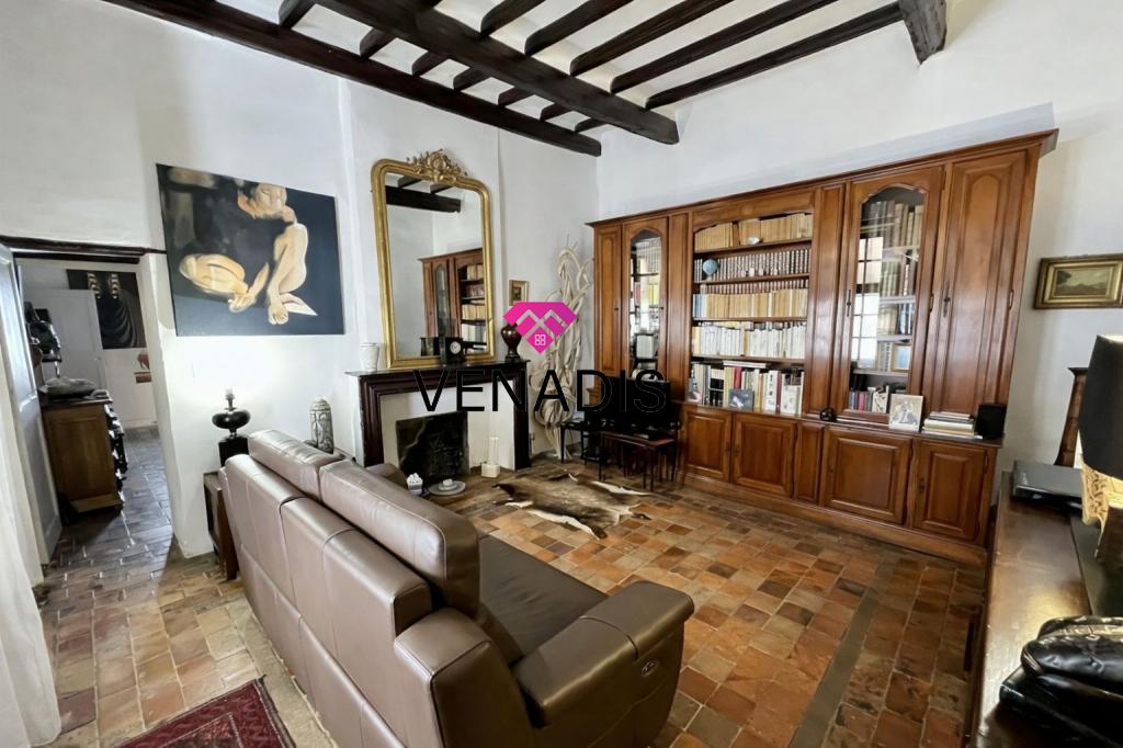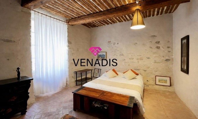 Demeure de caractère du XVe siècle entièrement remise au goût du jour, implantée au cœur du village avec jardin et piscine. Le bien développe environ 195 m² de surface habitable, articulés autour d'une cour intérieure de 110 m² agrémentée de végétation. La distribution intérieure comprend un hall d'entrée, une cuisine ouverte sur la salle à manger, un salon, quatre chambres, une salle de bains, deux salles d'eau et des toilettes. Complètent l'ensemble un grenier de 120 m², des caves voûtées et une cave à vin dédiée.