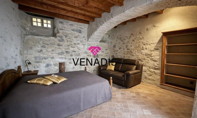 Le cachet de l'époque a été soigneusement préservé : plafonds, fenêtres et arcades du XVe siècle, cheminée du XVIIIe, escaliers d'origine, murs en pierre apparente, moulures anciennes, tomettes au sol et parquets massifs. Le confort contemporain n'est pas en reste avec une pompe à chaleur, un chauffe-eau thermodynamique, un système d'arrosage automatisé et une cuisine entièrement équipée — un mariage réussi entre patrimoine et modernité. La toiture a été intégralement rénovée.